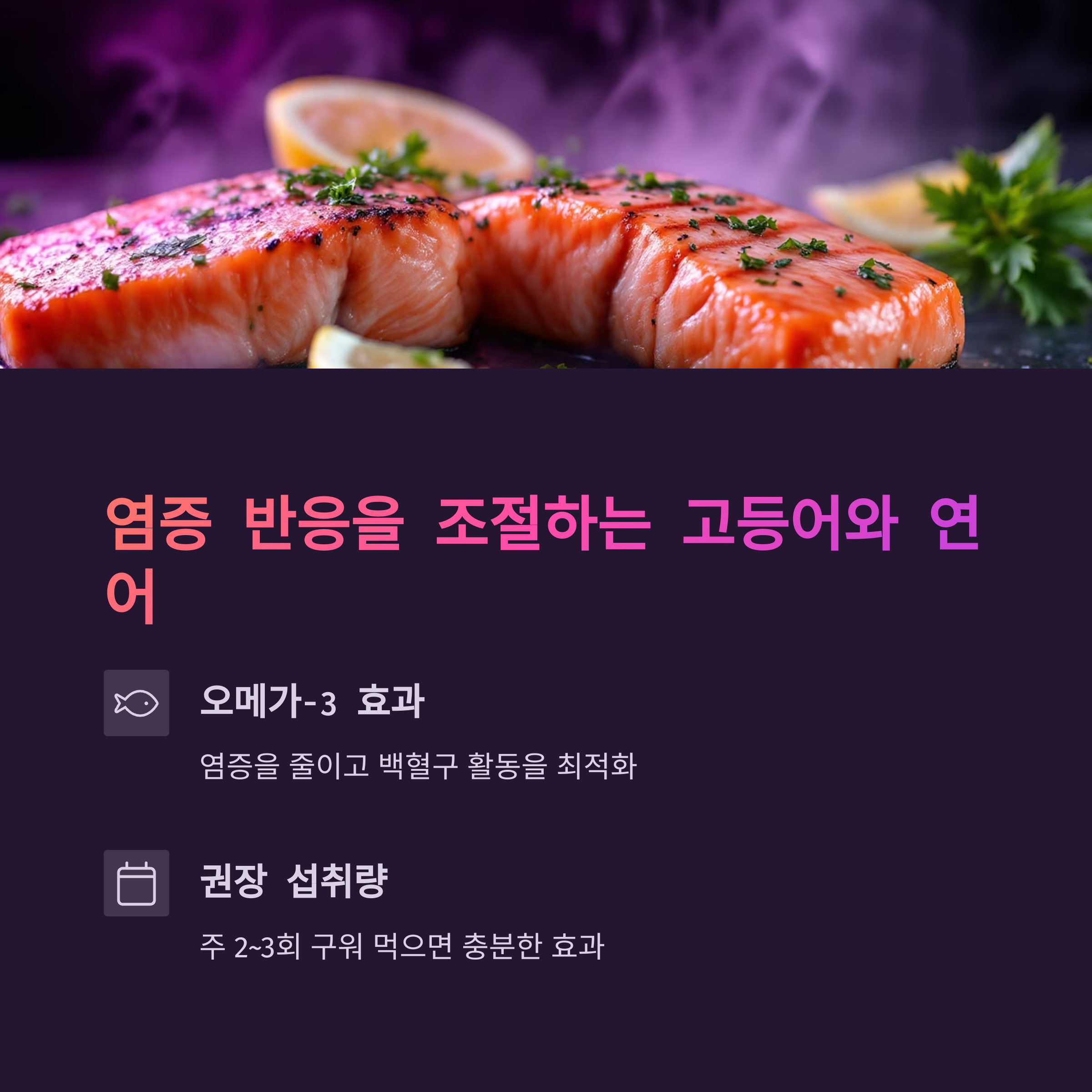 생선에 포함된 오메가-3 지방산은 염증을 줄이고 백혈구 활동을 최적화하는 데 도움이 됩니다.