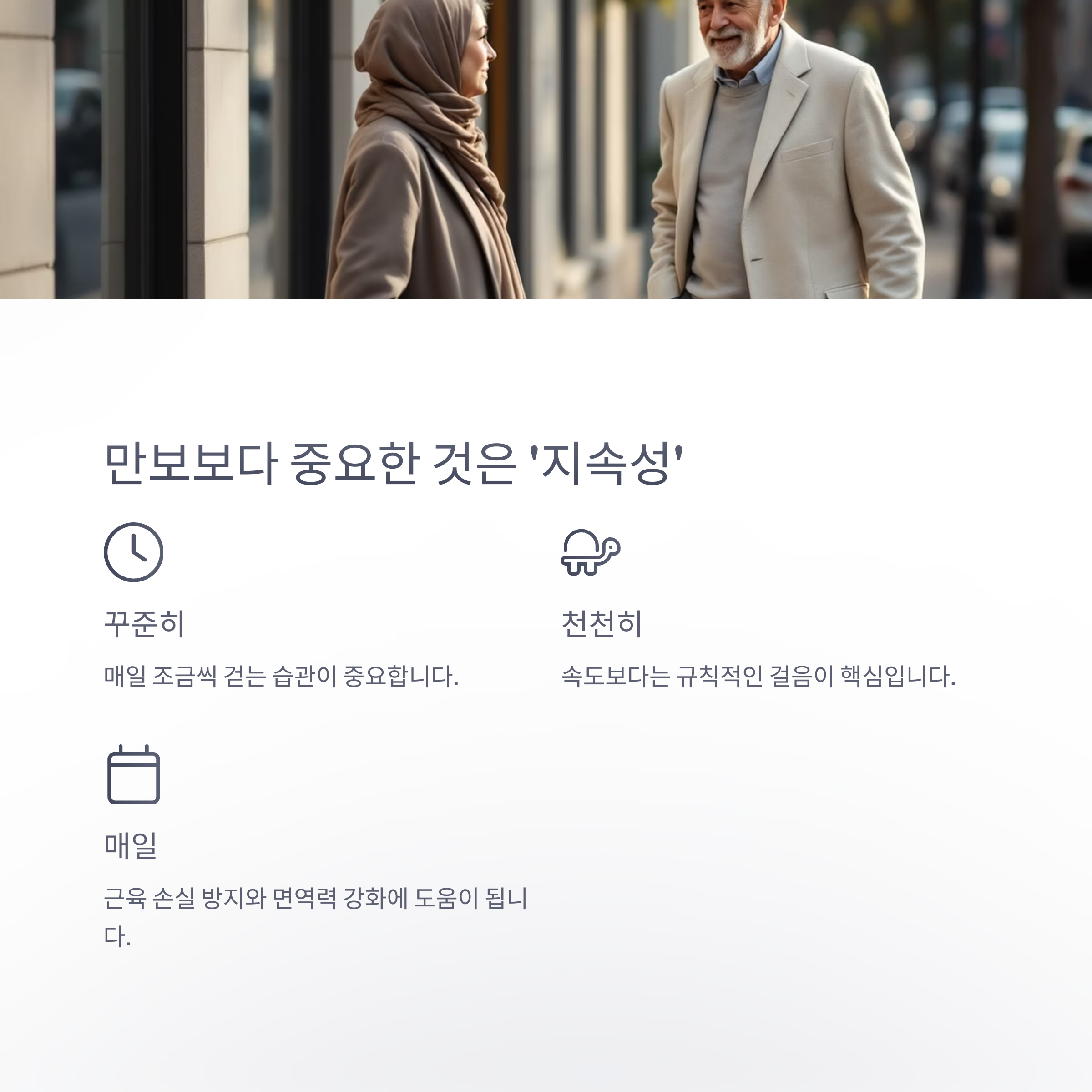 즉, 걷기의 핵심은 ‘양’이 아닌 ‘지속성’에 있습니다.