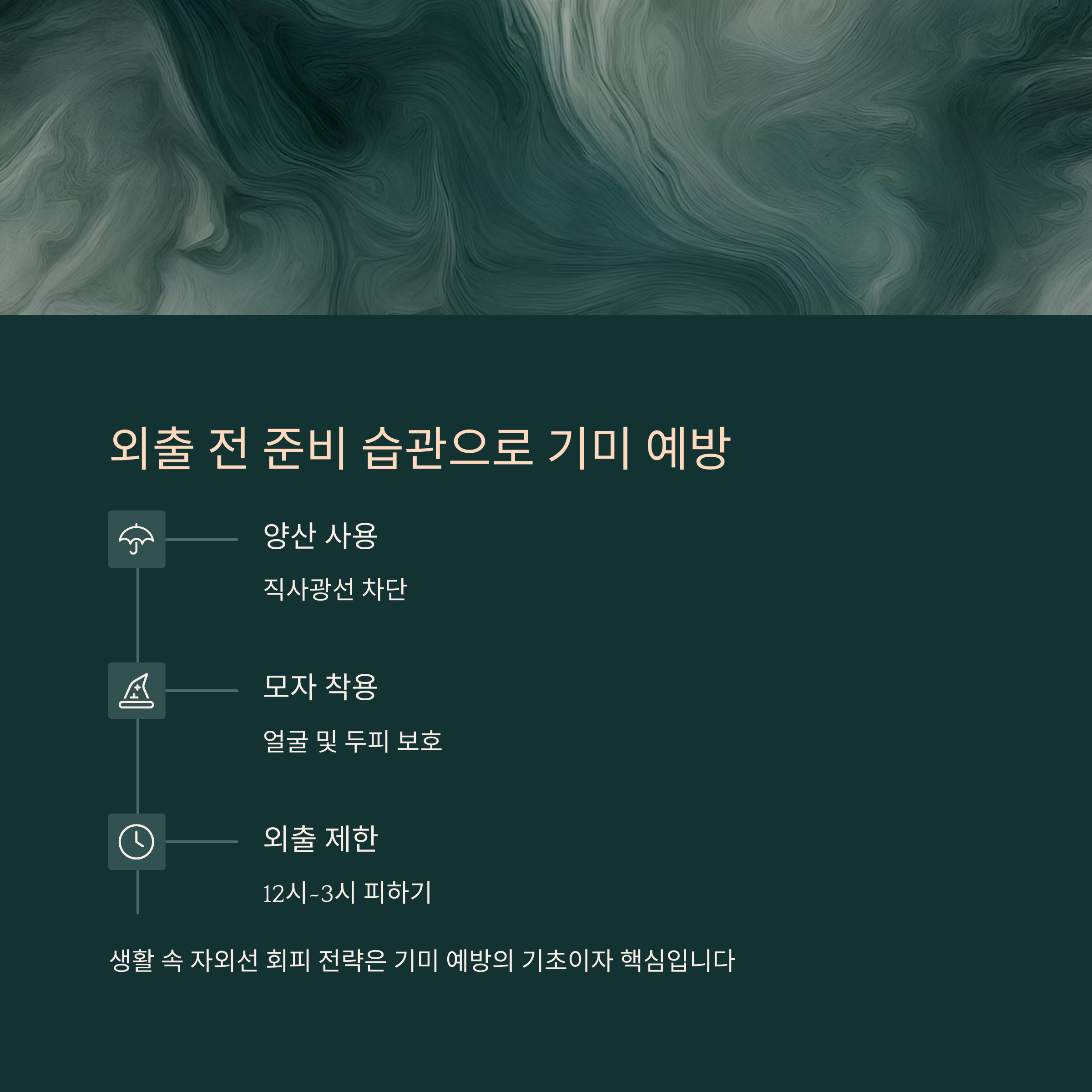 생활 속 자외선 회피 전략은 기미 예방의 기초이자 핵심입니다
