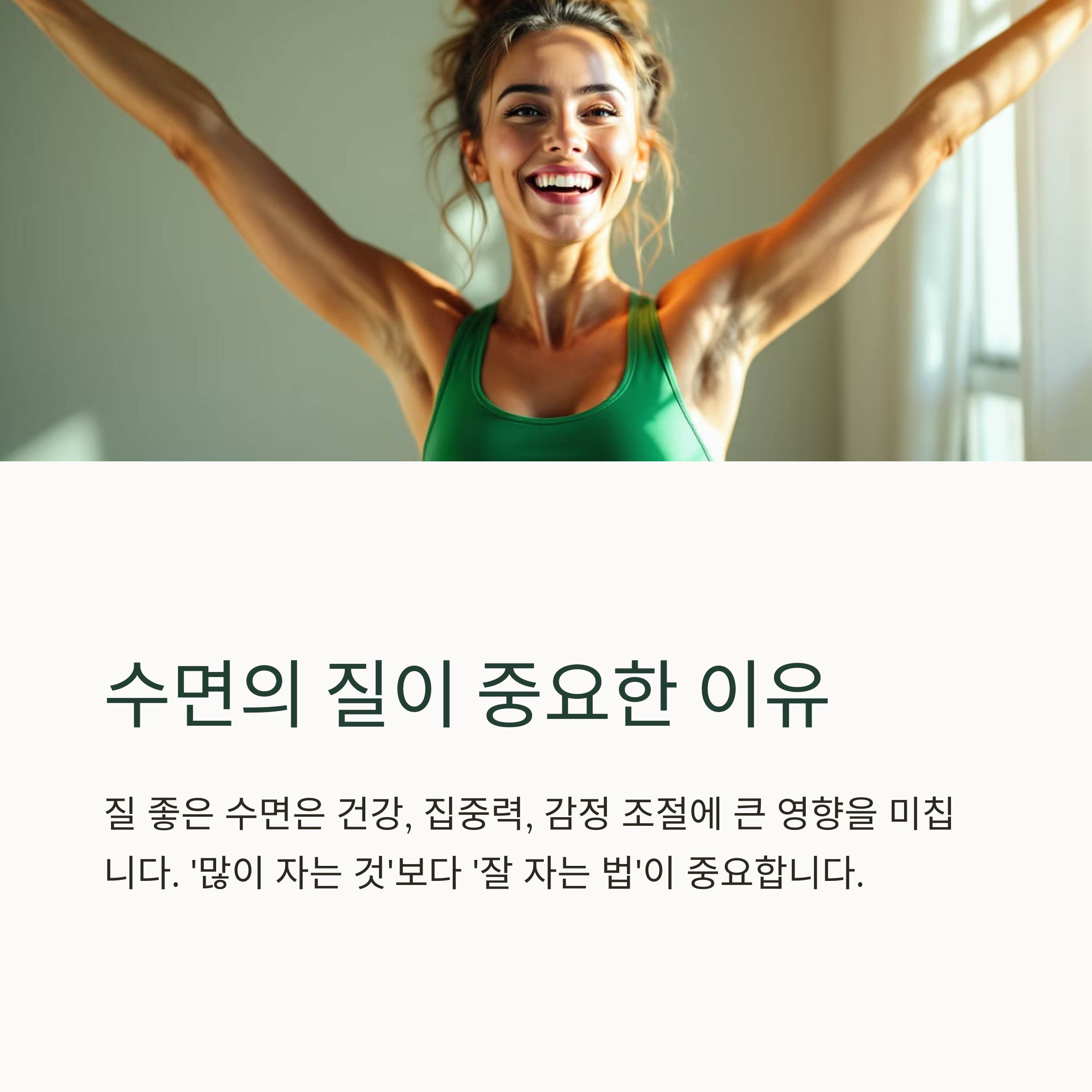 단순히 ‘잠을 많이 자는 것’이 아니라 ‘잘 자는 법’을 아는 것이 중요합니다.