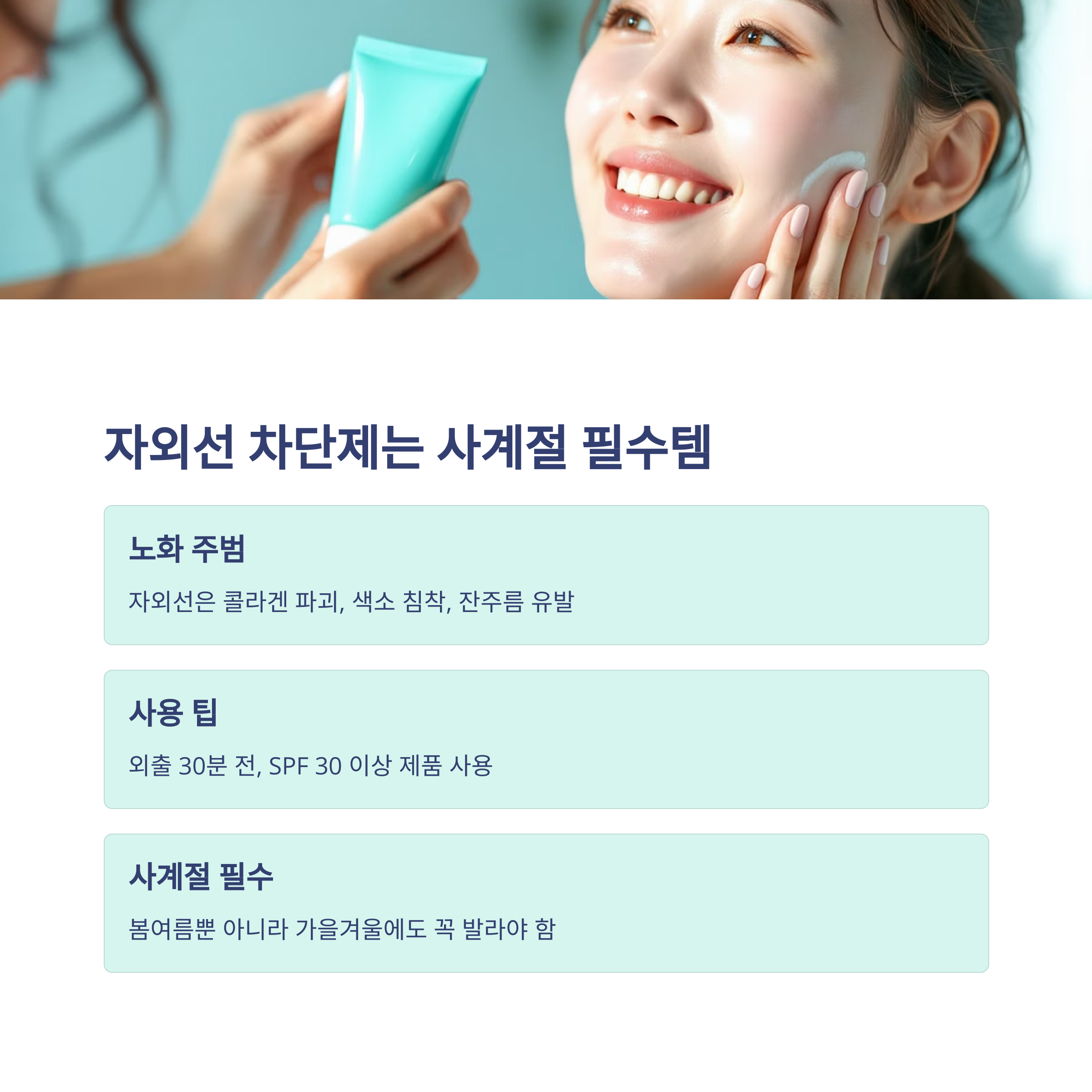 파괴하고, 색소 침착과 잔주름을 유발합니다. 봄, 여름뿐 아니라