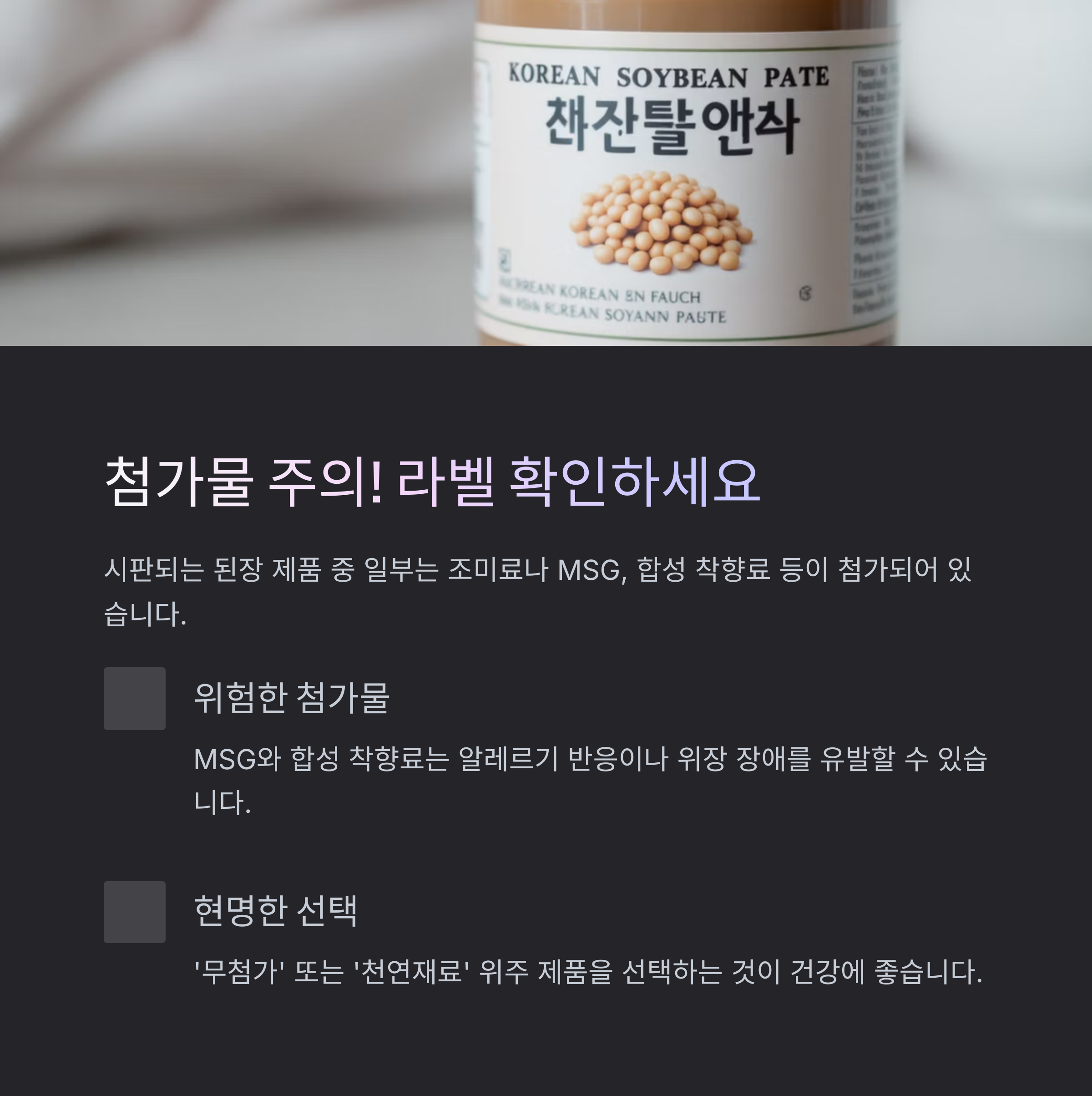 MSG 사용된 시판 된장? 첨가물 꼭 확인하세요