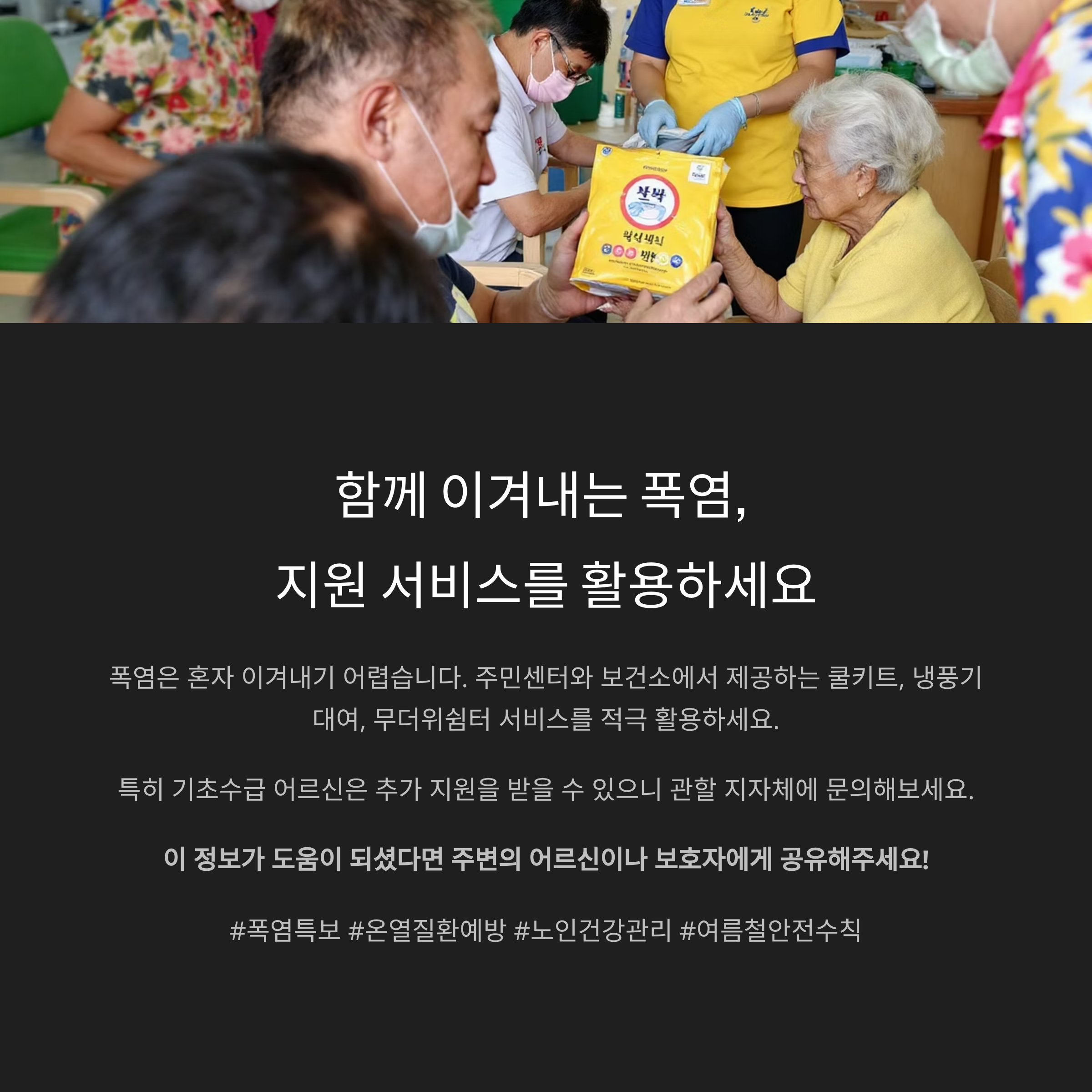 특히 기초수급 어르신의 경우 폭염 지원 대상이 될 수 있으니