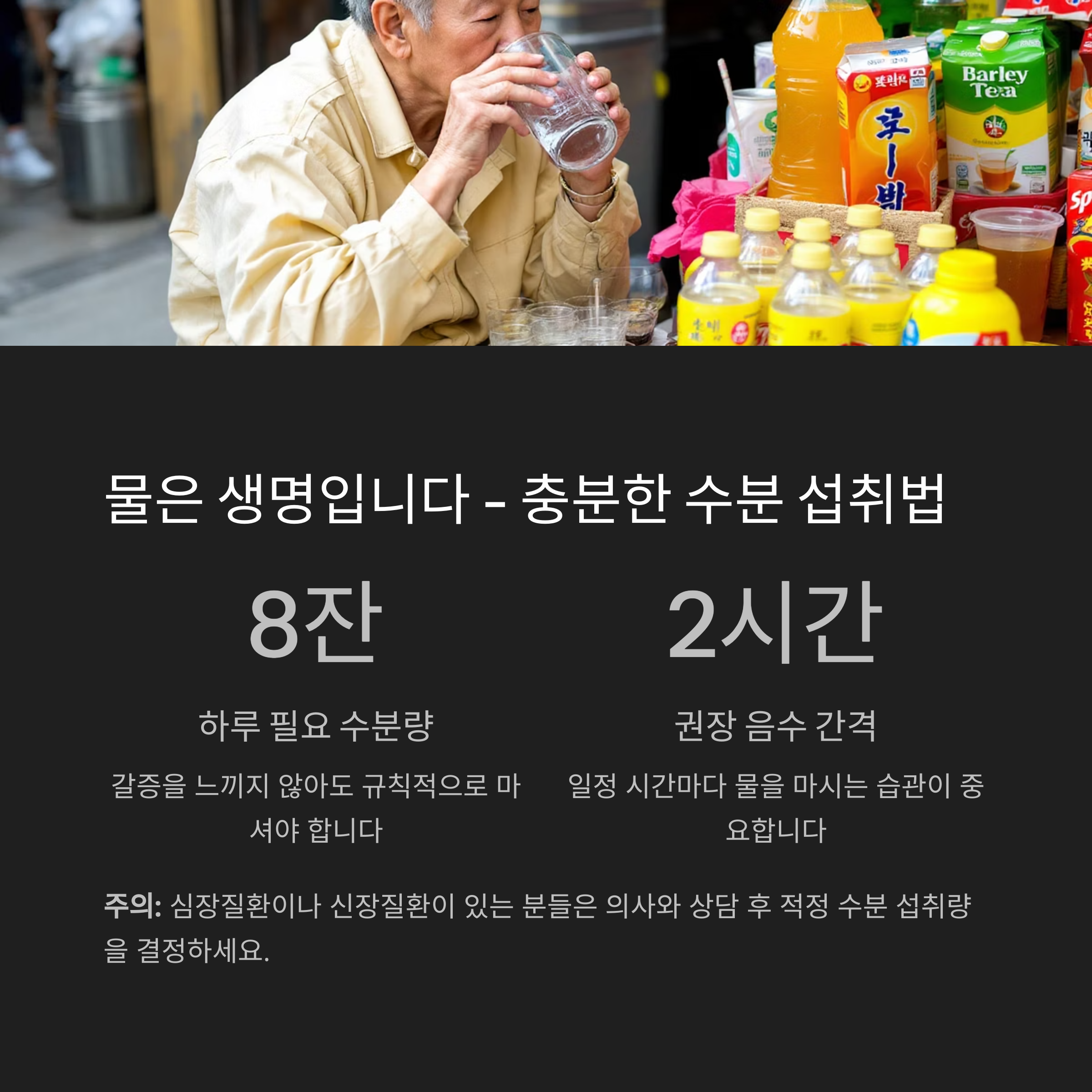 단, 심장질환이나 신장질환이 있는 분은 의사와 상담 후 섭취량을 조절해야 합니다.