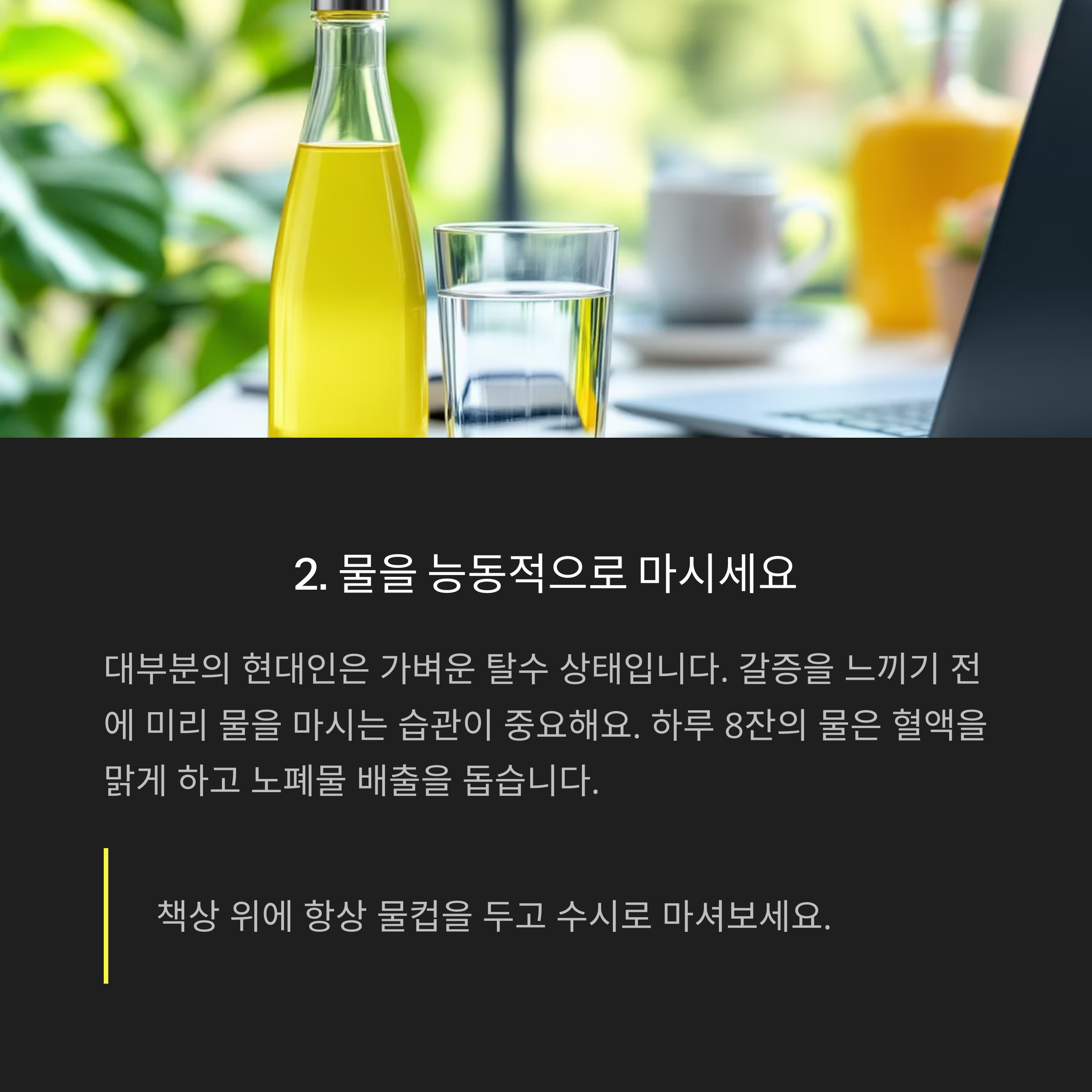 물을 하루 여덟 잔, 능동적으로 마셔야 합니다