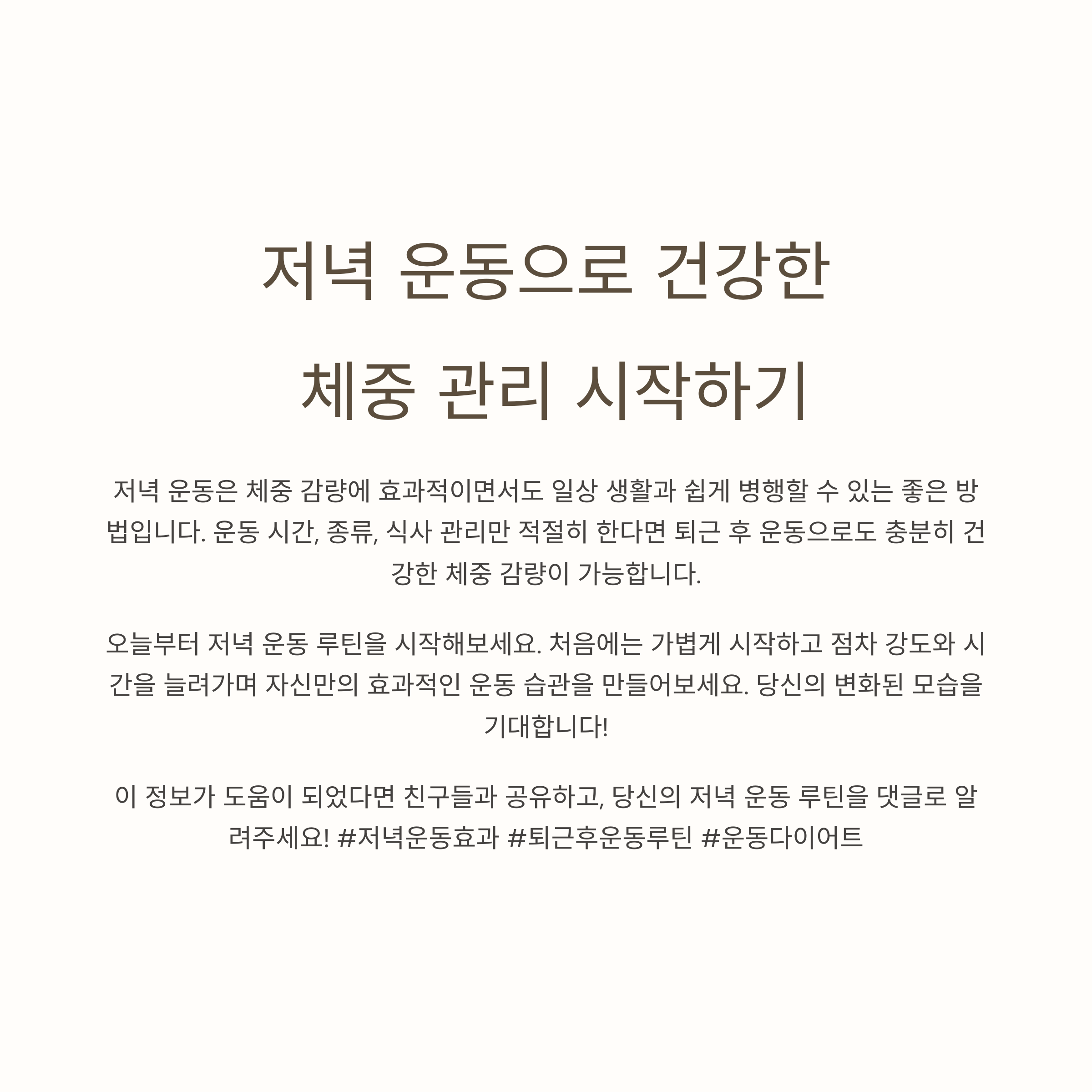 퇴근 이후 운동이 체중 감량에 효과적인 이유는 여러 가지가 있습니다.