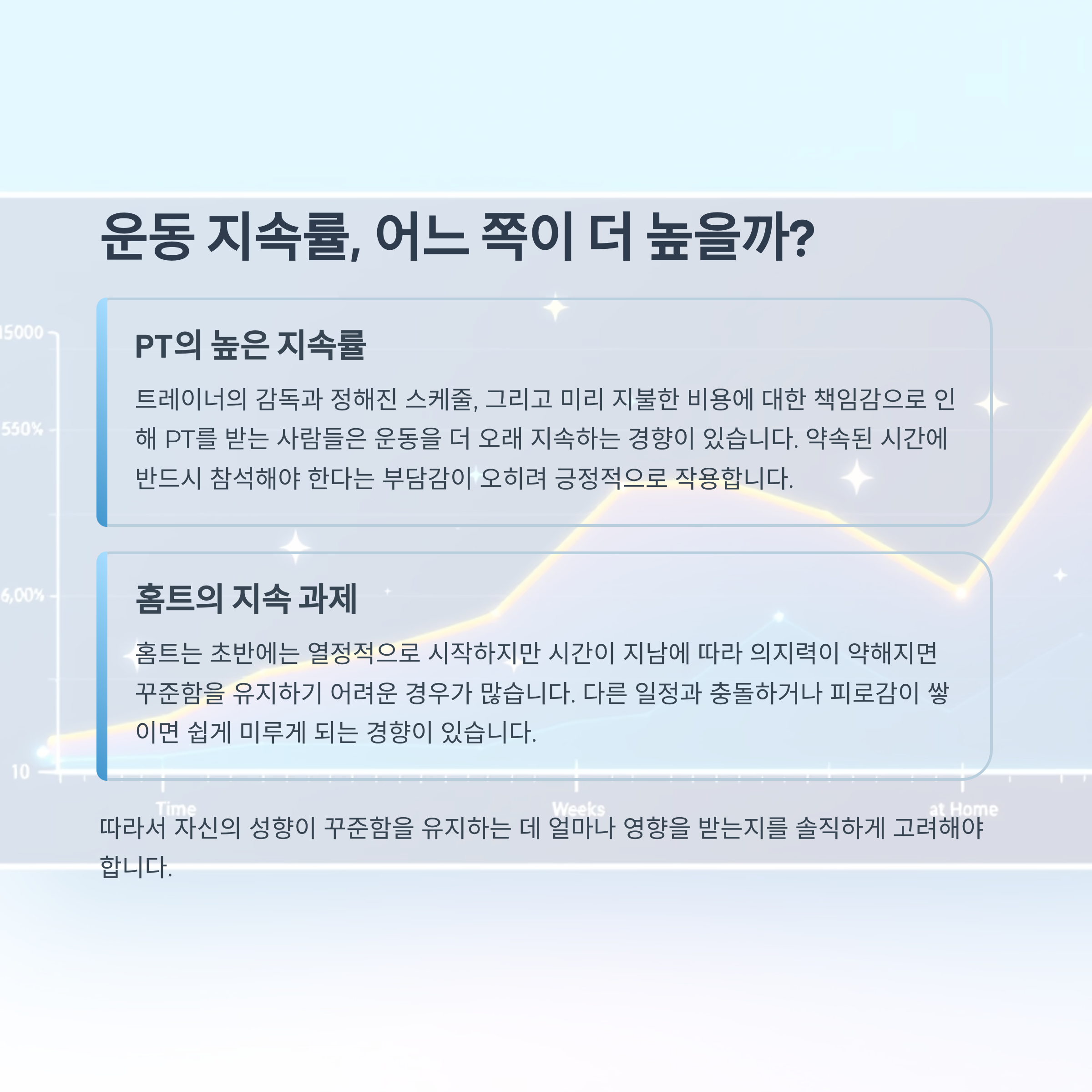 두 운동 방식은 접근성, 비용, 효과 등에서 큰 차이를 보입니다. 이 글에서는 홈트와 PT의