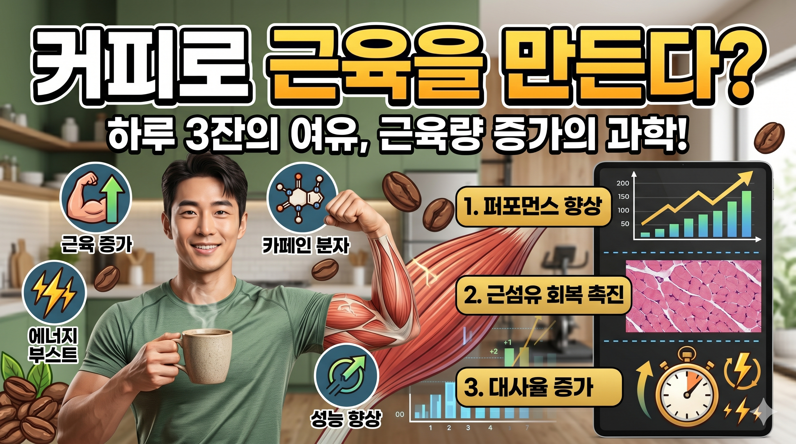"커피 한 잔의 여유가 근육을 만든다"하루 3잔 커피 섭취와 근육량 증가의 과학적 근거