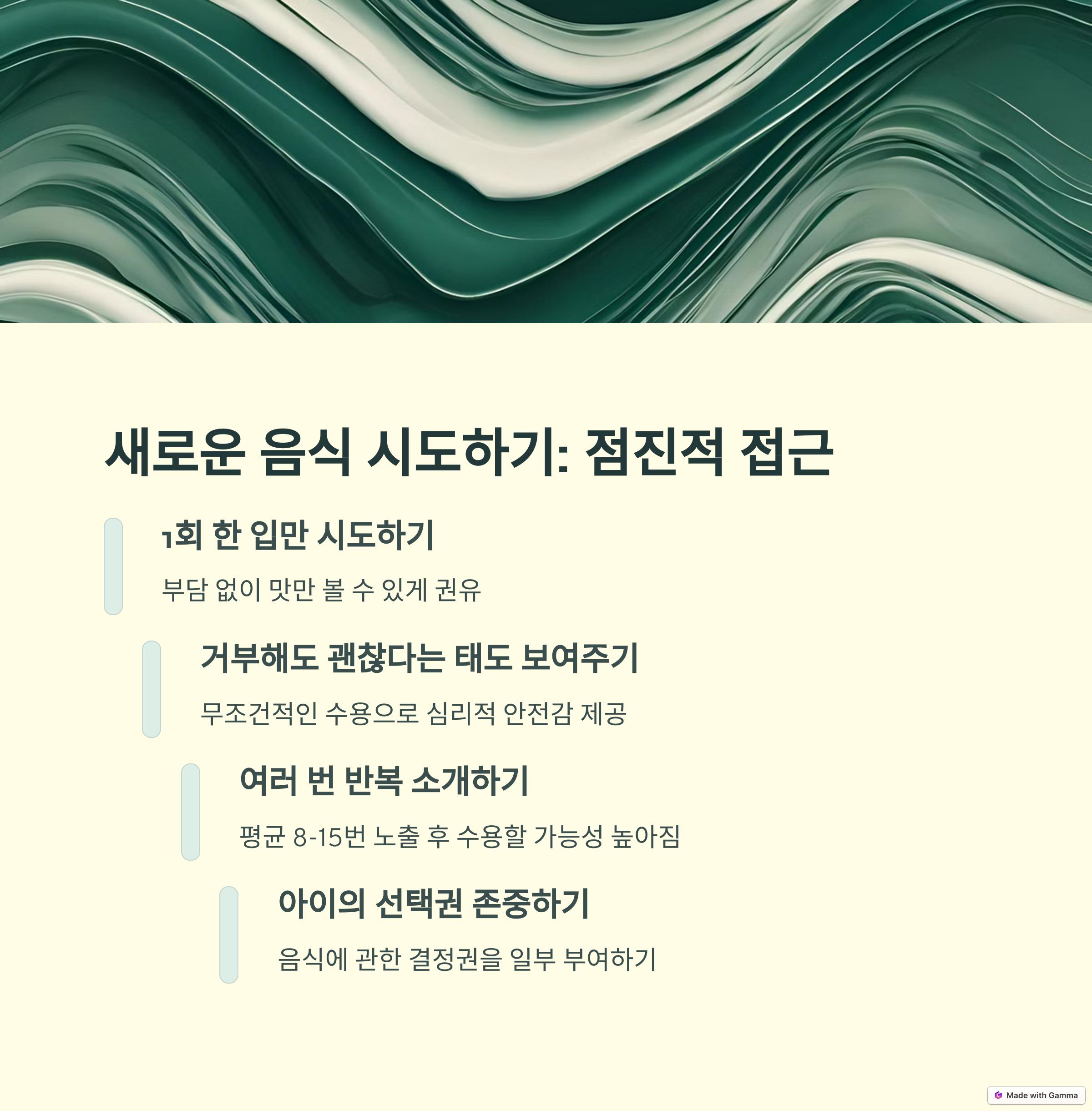 ‘편식 고치기’라는 표현 대신 ‘식사 시간의 즐거움을 높이는 연습’이라고 생각해보세요. 아이에게 식사는 훈련이 아니라 놀이이며, 선택할 수 있는 권리가 있을 때 더 열린 태도를 보여줍니다. “어떤 걸 먼저 먹고 싶어?”라는 질문은 단순한 식사 유도가 아닌, 아이의 자존감을 키워주는 말이기도 해요.