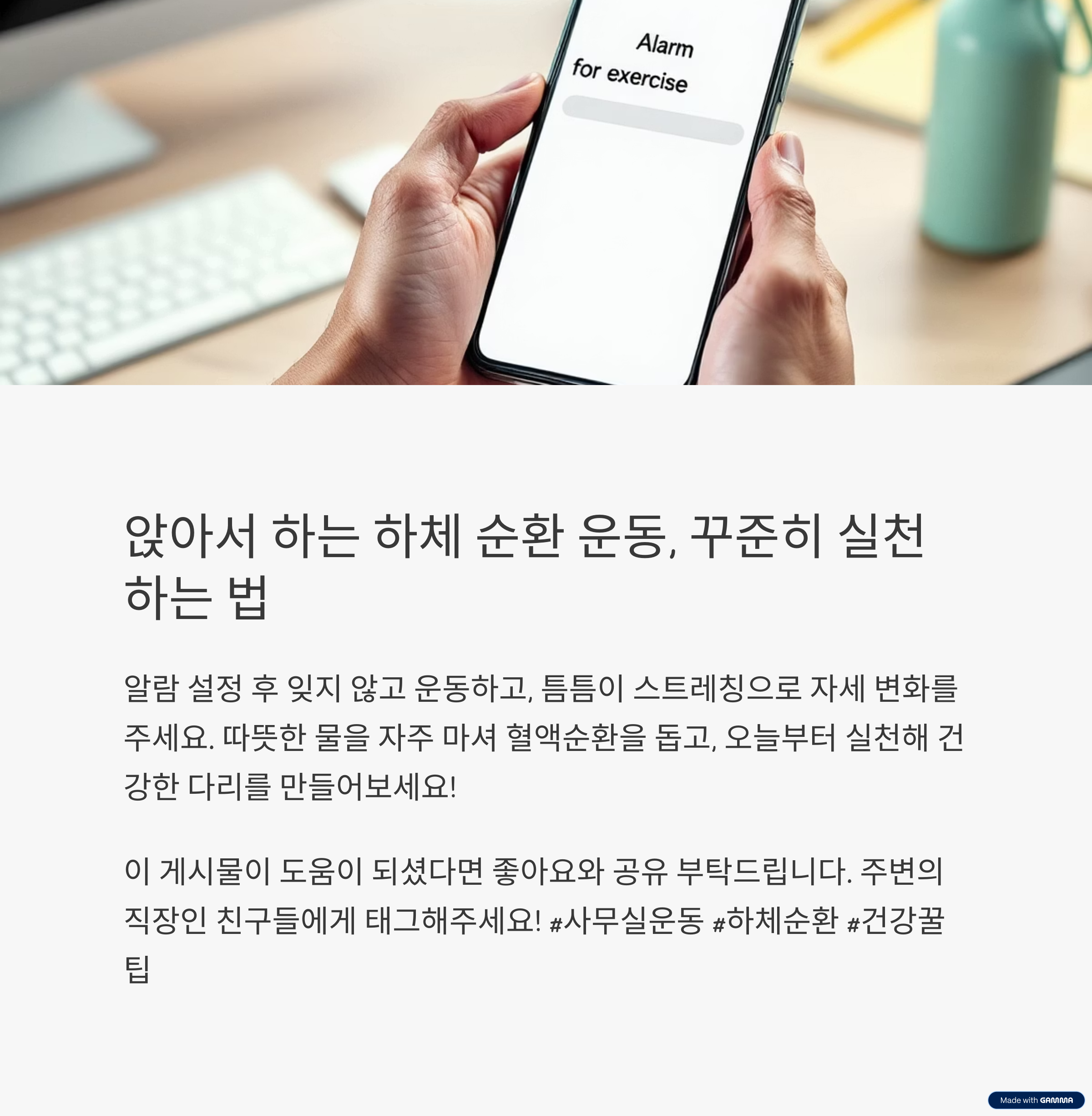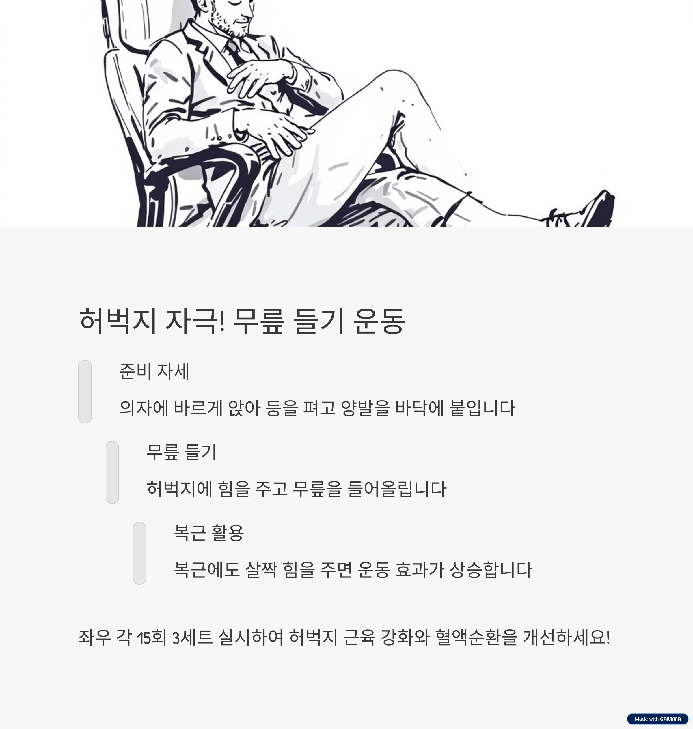- 1. 의자에 앉은 채로 가능한 하체 순환의 중요성