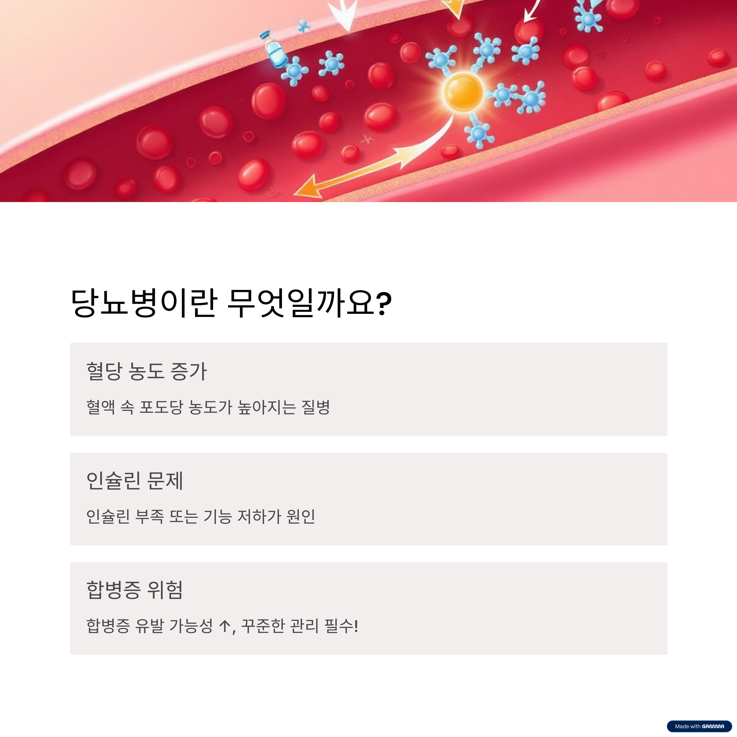 혈당이 지속적으로 높아지면 온몸의 혈관과 신경에 손상을 일으켜 다양한 합병증을 유발할 수 있습니다.