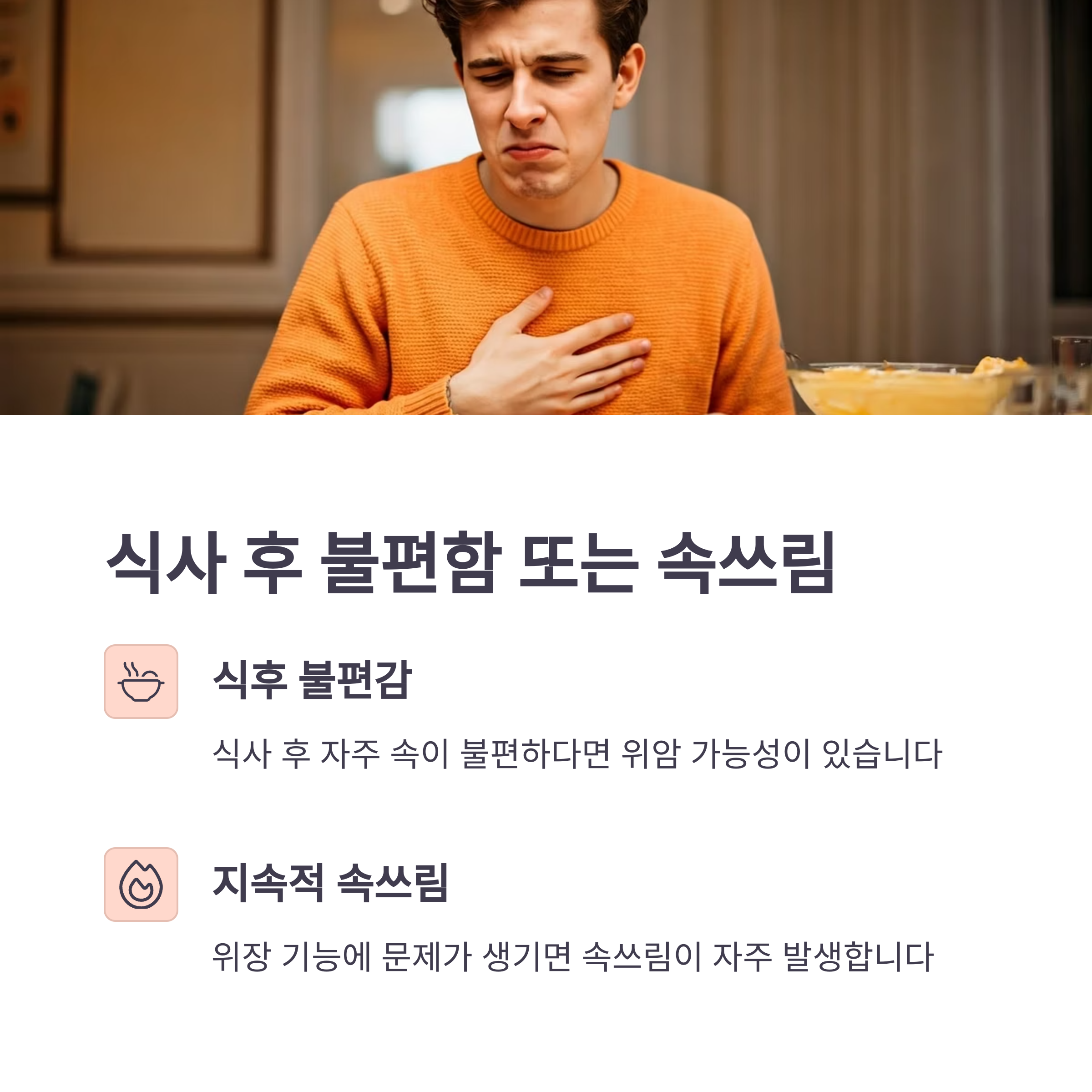 2. 식사 후 불편함 또는 속쓰림