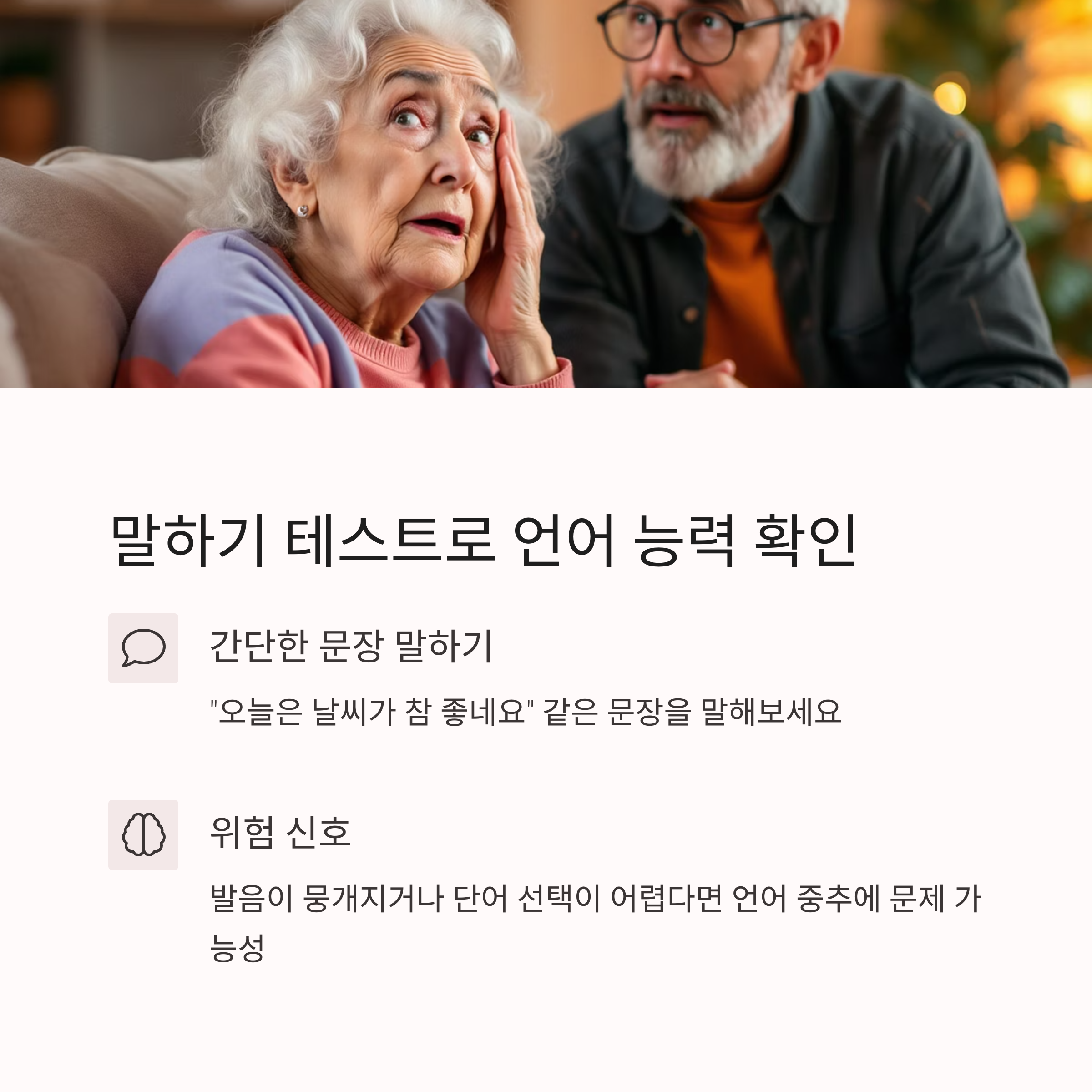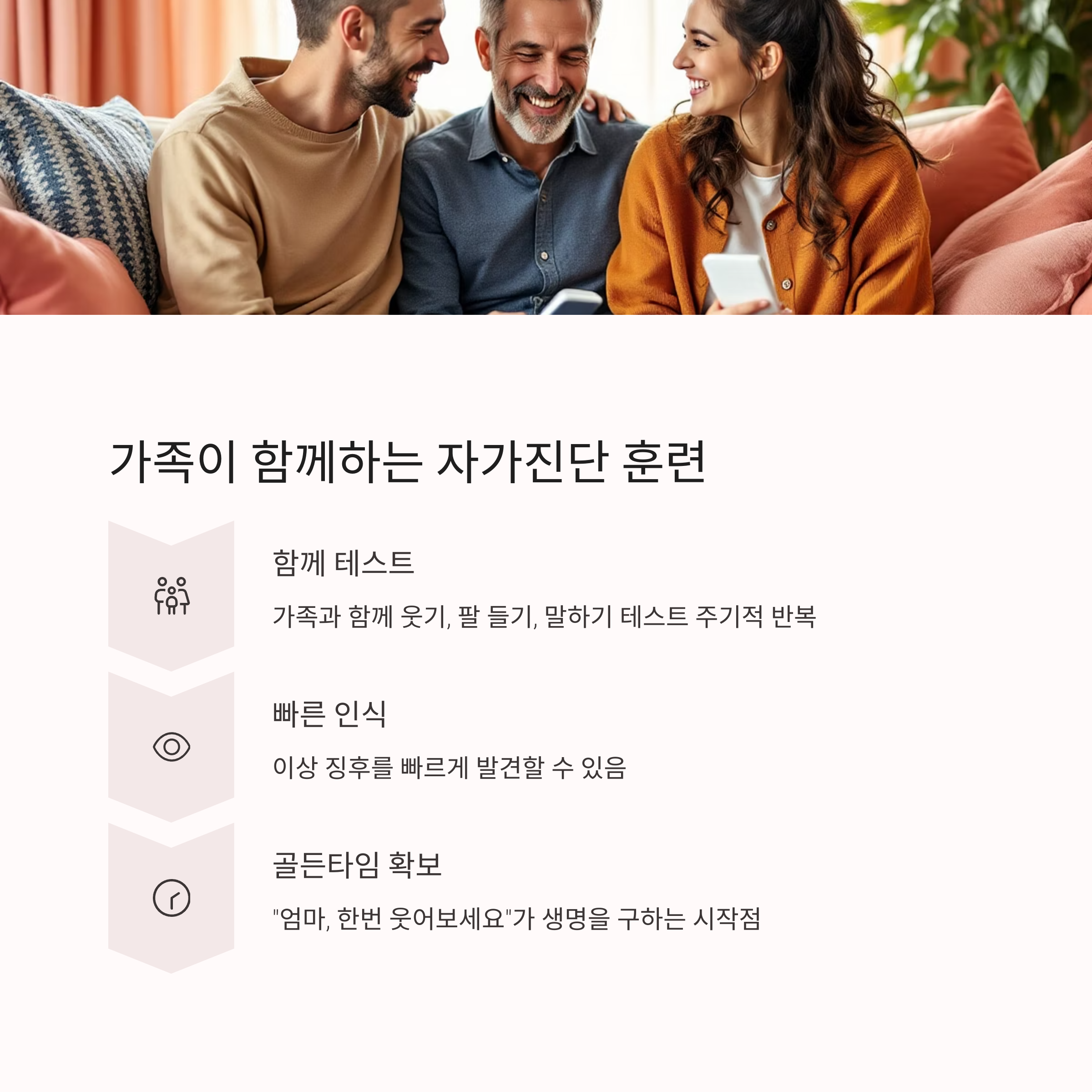 가족과 함께 웃기, 팔 들기, 말하기 테스트를 주기적으로 반복하면