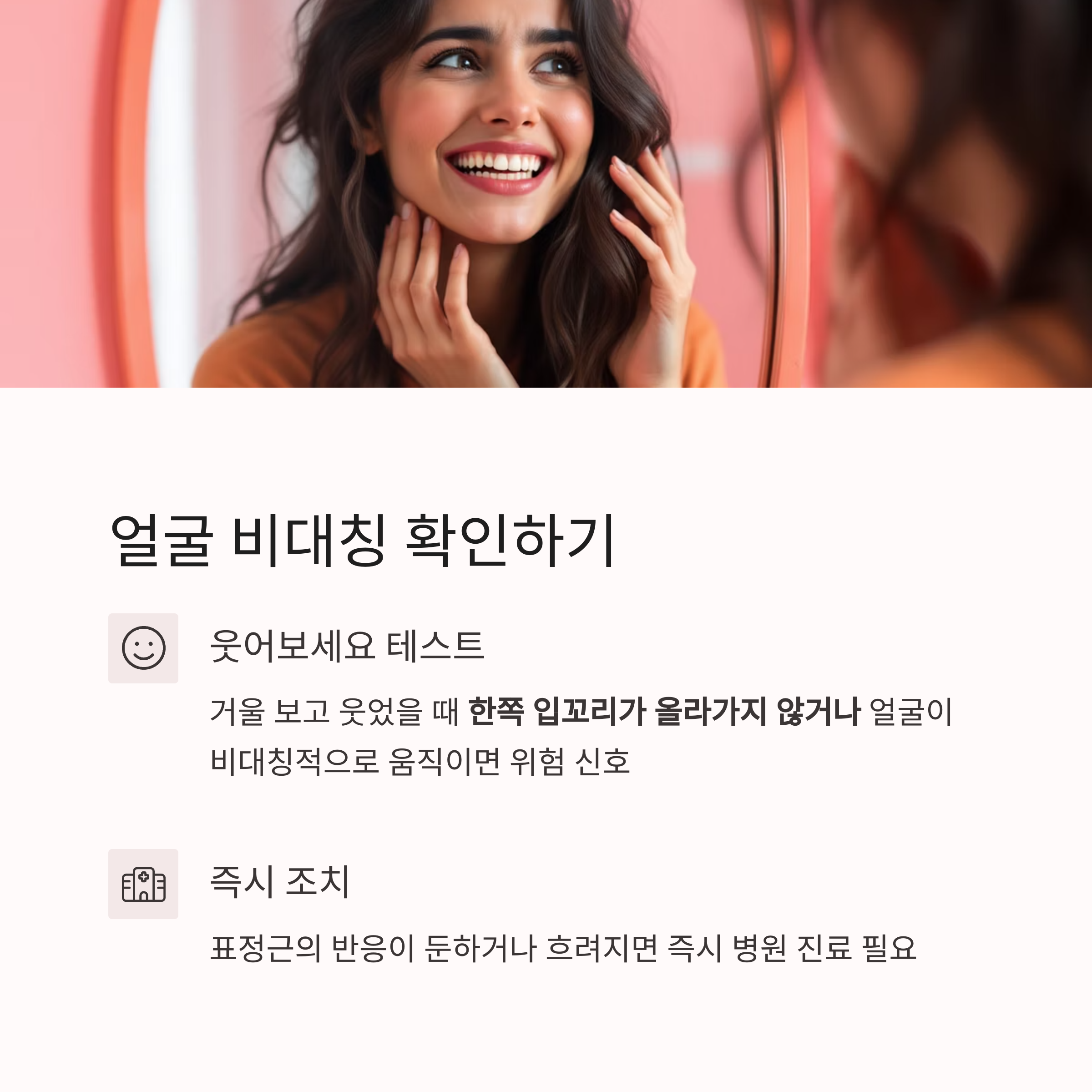 한쪽 입꼬리가 올라가지 않거나 얼굴이 비대칭적으로 움직이면