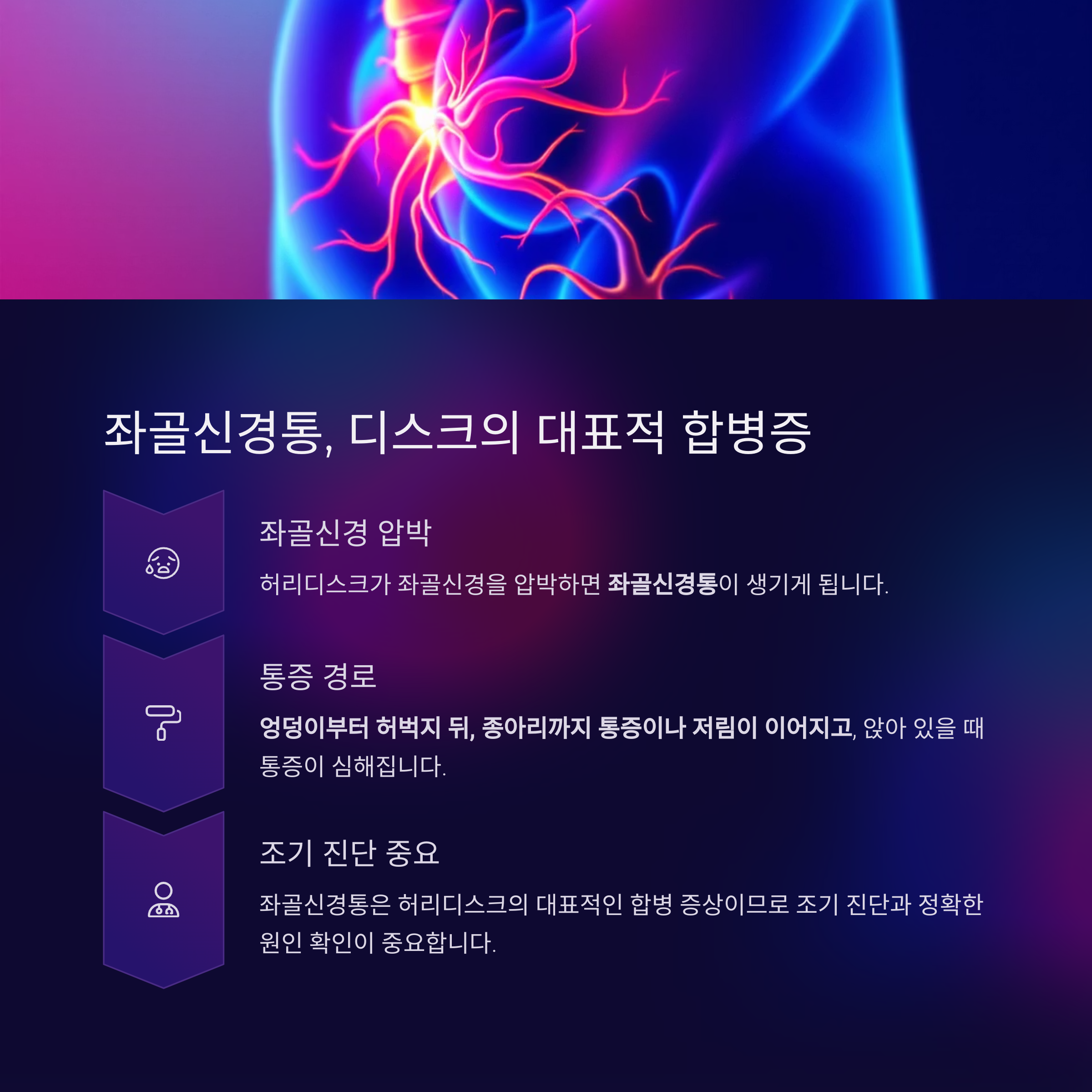 좌골신경통은 허리디스크의 대표적인 합병 증상이므로