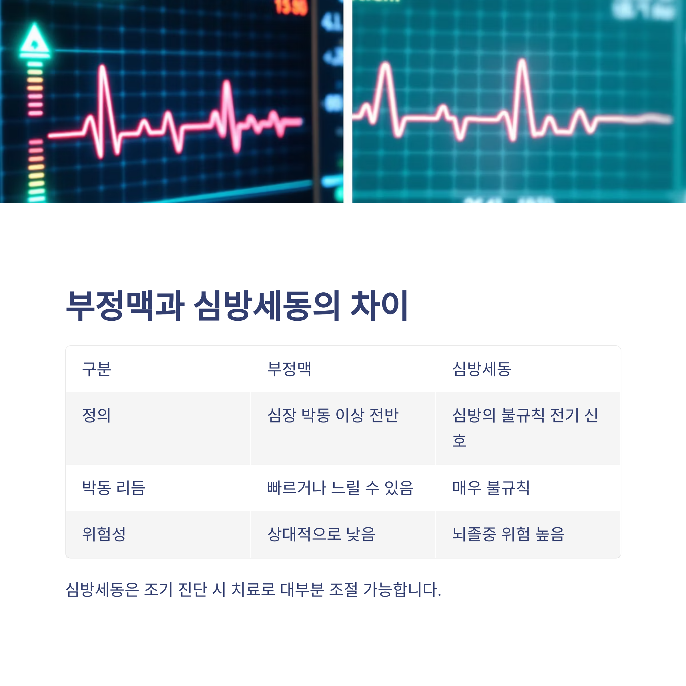 | 박동 리듬 | 빠르거나 느릴 수 있음 | 매우 불규칙 |