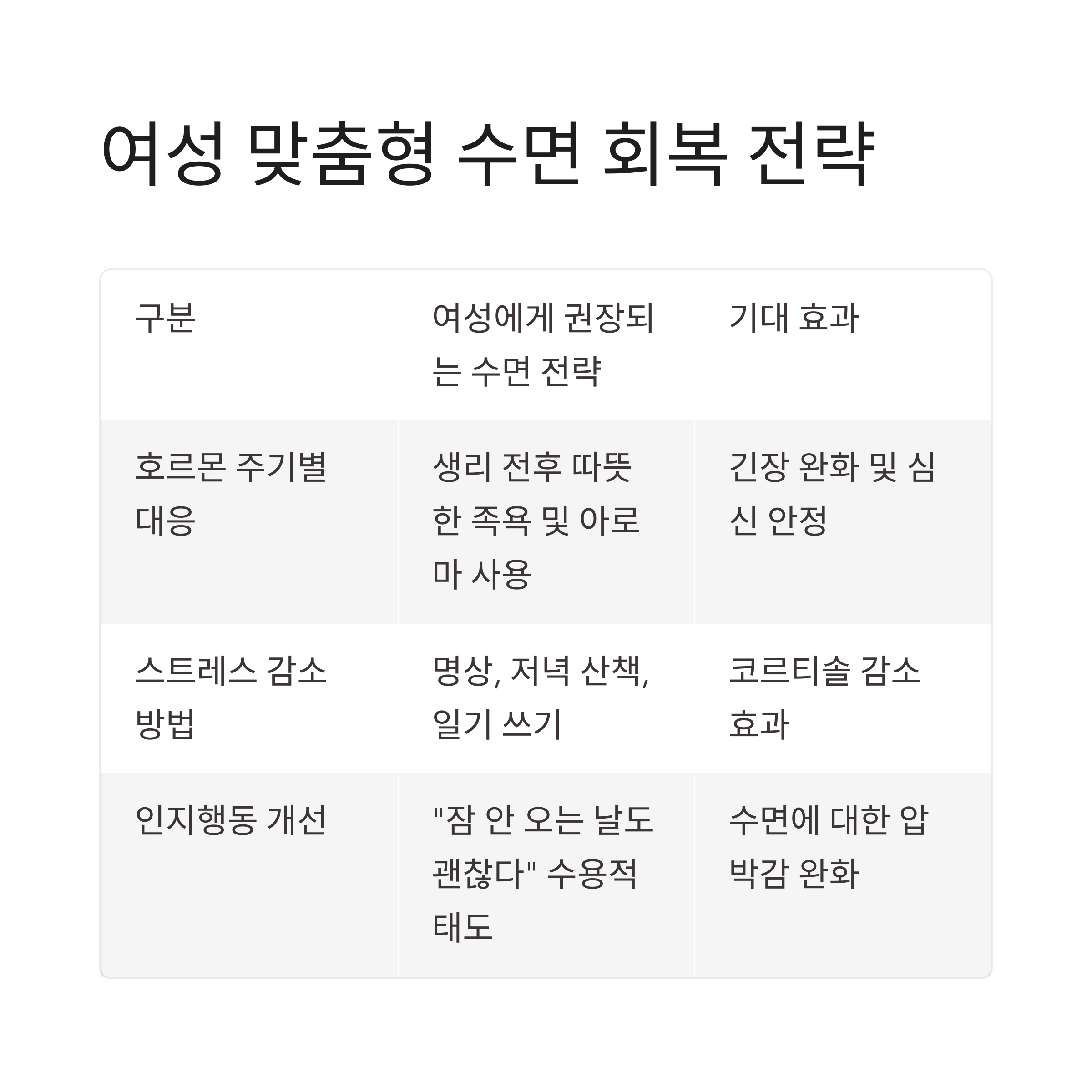 구분 여성에게 권장되는 수면 전략 기대 효과