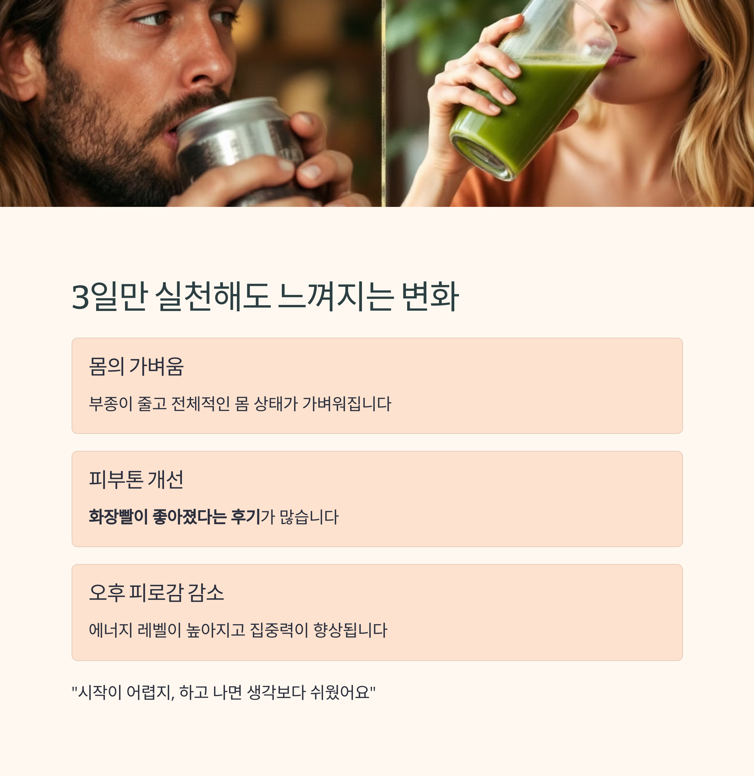 3일만 실천해도 몸의 가벼움과 피부톤 개선을 느끼는 분들이 많습니다