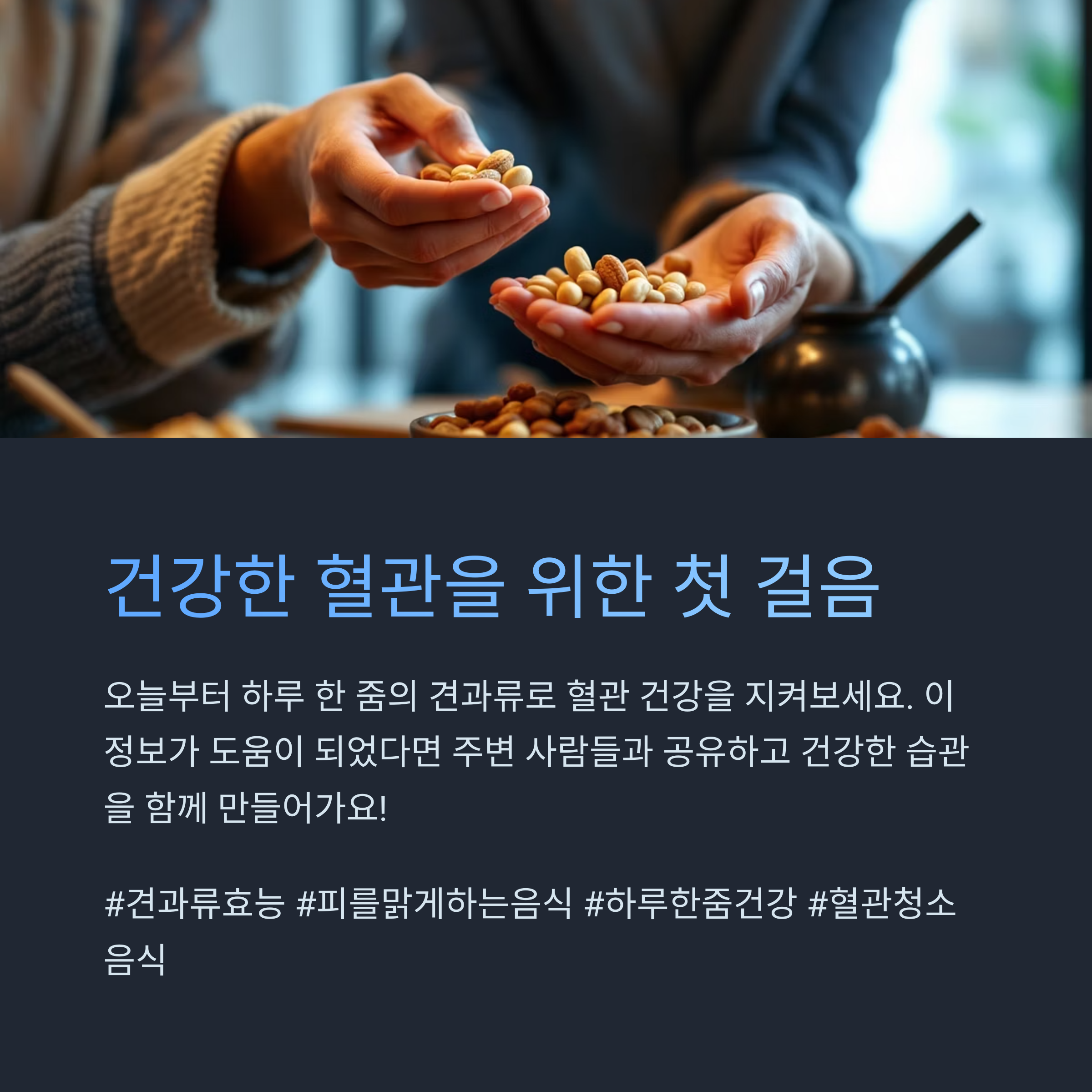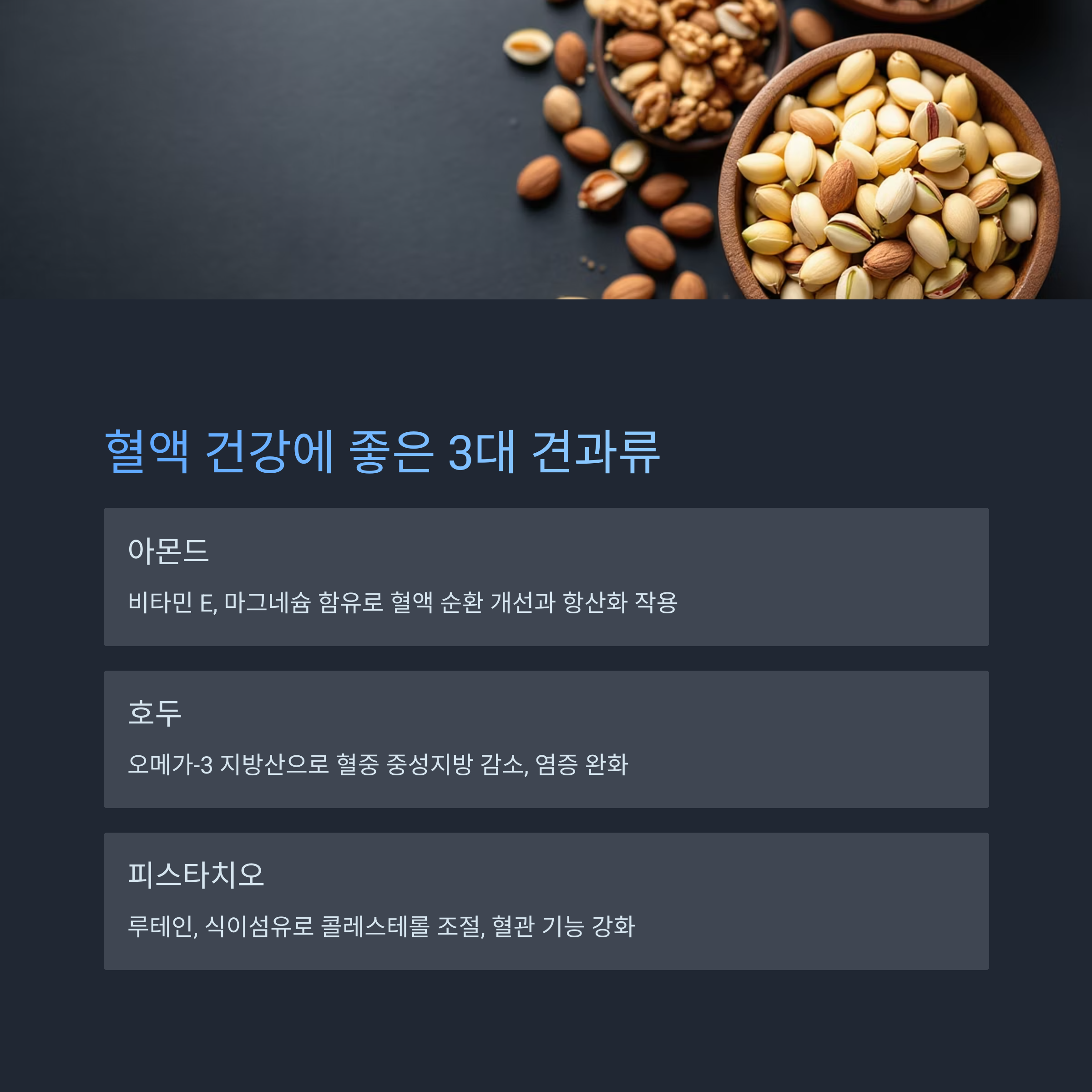 견과류는 심혈관 질환 예방과 혈액 순환 개선에 탁월한 효과가 있는 식품입니다.
