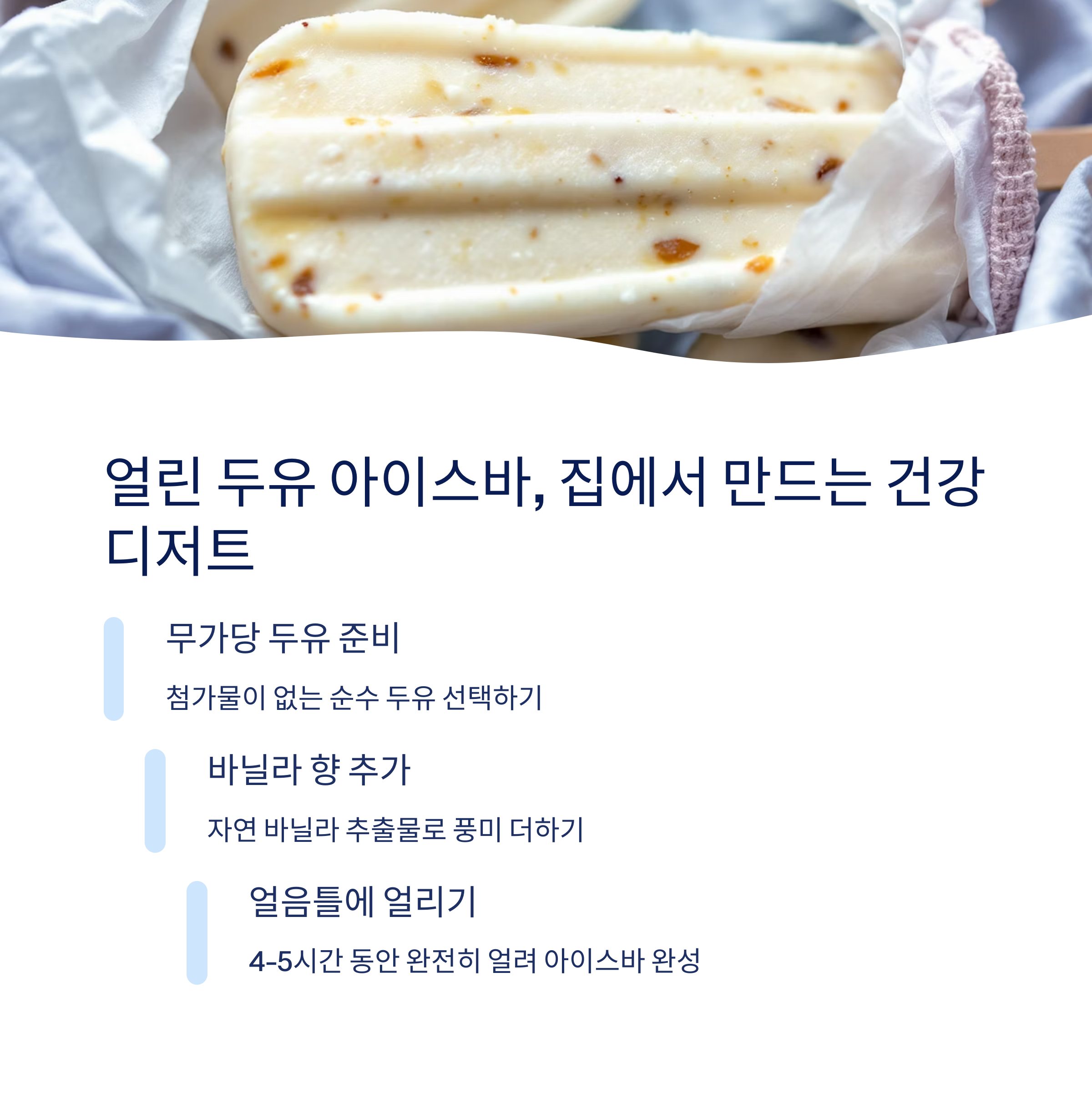 설탕이나 첨가물이 들어간 아이스크림 대신, 무가당 두유를 얼려 간단한 아이스바로 만들어 보세요.